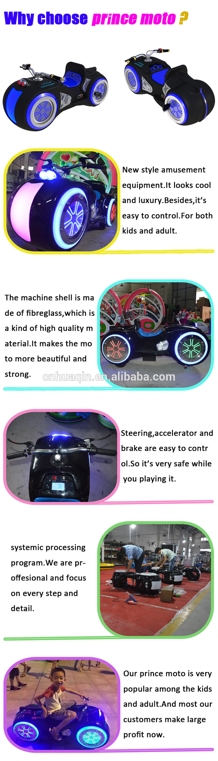 3. Sit in the machine,speed up by twisting the right steering wheel.You can choose fast/normal/slow speed.